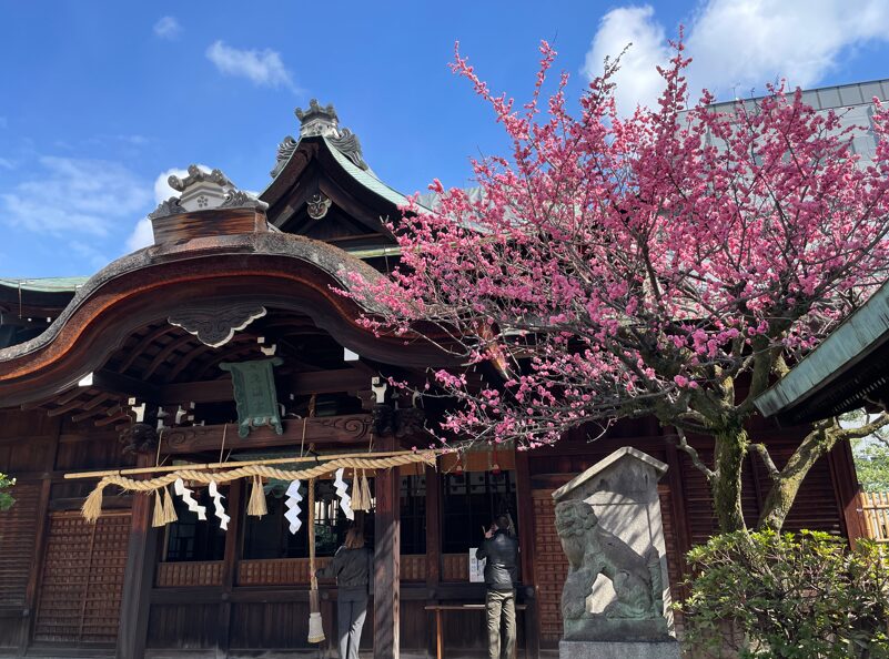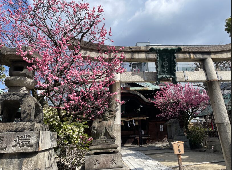 当施設の向かいにある 菅大臣神社 では、梅の花が咲いています💮